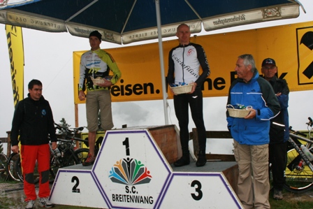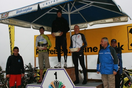 Regenschauer und kühle Temperaturen – Heuer genau mein Wetter für gute Leistungen. Wie immer bei den Bergrennen, extrem schneller Start. Konnte mich aber gleich an der 8. Stelle einreihen und den Abstand nach hinten gross halten. Die ersten 2 Kilometer waren ziemlich steil und gar nicht so mein Gelände. Konnte daher auch nicht nach vorne aufschliessen. Fuhr dann zwischen Kilometer zwei bis ins Ziel ein einsames Rennen, wo es drum ging meine TopTen-Platzierung nach hinten abzusichern, denn von hinten nahte mit 2 Mann Verfolgern ziemlich Gefahr. Das war aber genau mein Terrain – ca. 10 % Steigung, somit ideal zum rhytmischen Kurbeln. Einen Verfolger musste ich noch ziehen lassen, kam aber dann als Gesamt 9. und 3. in der AK1 ins Ziel. War somit ein sehr erfolgreicher Start auf einer mir gänzlich unbekannten Strecke.