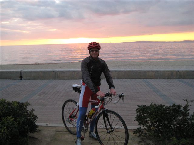 Nach einer relativ langen Anreise waren wir schliesslich fast zeitlich in Palma am Flughafen. Wolfgang kam aus Düsseldorf und ich aus München. Bis wir die Koffer hatten und im Hotel eingecheckt haben wars schon fast 16.00 Uhr. Da wir jedoch unbedingt auch bereits am ersten Tag kurbeln wollten, stressten wir uns ziemlich ab: Koffer ins Zimmer, schnell rein in die Dress, Rad zusammenschrauben und rauf aufs Rad. Bis zum Einbruch der Dunkelheit gingen sich gerade mal 25 km aus, aber