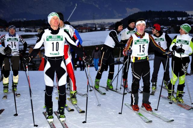 waren nur 17 Läufer am Start. Trotzdem einige bekannte Namen unter ihnen und ging es vom Start weg auch gleich zur Sache. Der untere Teil ist ja extrem steil und ist mir aber sehr gut gelegen. War gleich mal in der Spitzengruppe und an 4. Position. Somit eine gute Ausgangsposition. Leider war es diesmal extrem glatt (eiskraupeliger Schnee) und so kam ich ins Rutschen. Mußte alle Kraft aufwenden, um nicht nach unten zu Rutschen und schnallte der Puls auf Maximalleistung hoch. Nachdem ich mich erfangen hatte war ich leider nur mehr Achter. Brauchte eine Zeit bis ich wieder den Rhythmus fand. Ende Steilhang konnte ich wieder Tempo aufnehmen und zu 2 Überholmannövern