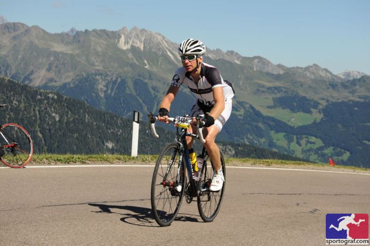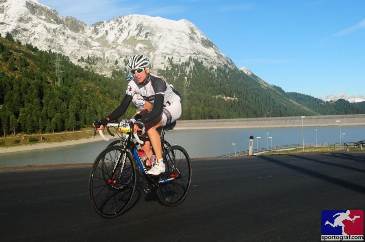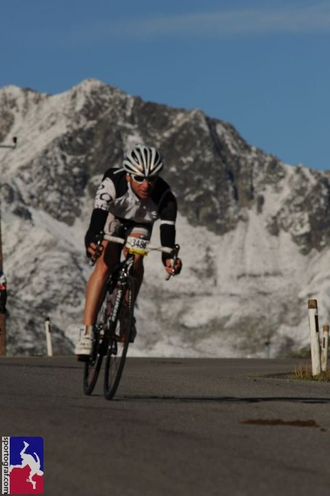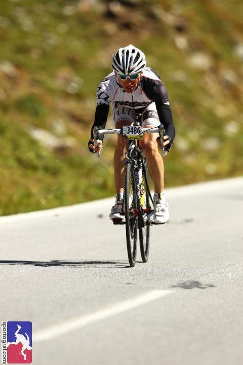 Bis Moos ging es dann etwas ruppig, aber ab einer Höhe von ca. 1.400 Meter lief es dann richtig rund und konnte ich sehr gut Tempo machen. Der Labestation in Schönau, trotz nur mehr einer halben Flasche Flüssigkeit, kaum Beachtung geschenkt, um weiter diesen Tritt zu halten. 300 Höhenmeter unterhalb der Paßhöhe dann doch etwas an Schwung verloren, aber weit wars ja nicht mehr. Vor dem Tunnel noch das Trikot zu und dann mit Schwung über die Paßhöhe auf die rasante Abfahrt Richtung Gegenanstieg zu Mautstelle. Der Tacho zeigte 90 km/h. Den Gegenanstieg nochmals schnell hinaufgekurbelt. Die letzten Kilometer bei Gegenwind dann etwas passiv gefahren, sodaß ich bei der Zieleinfahrt sogar noch recht gut drauf war und endlich nach dem Ötztaler einmal im Ziel nicht komplett fertig.