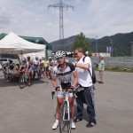 Dann kam eine kleine Baustelle am Plateau und ein paar andere und ich konnten wieder aufschliessen. Bevor es dann in die Abfahrt nach Mötz ging, kamen von hinten noch einige hinzu. Die Gruppe hatte dann ca. 15 Mann und ging es dann recht zügig Richtung Ziel. Keine Attacke hat den richtigen Speed, um sich vom „Feld“ abzusetzen und so wurde es dann durch Inzing ganz schön eng bei Gegenverkehr. Ich konnte mich auf den letzten Metern noch nach vorne arbeiten und fuhr (laut erster Ergebnisliste) als Dritter durchs Ziel. Was nicht nur mich, sondern vorallem meine Kids sehr freute.