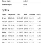 Bei km 30 noch voll auf Kurs, bei km 35 wärs auch noch möglich gewesen, dann leider deutlicher Pace-Verlust. Zum Schluss nochmals alles rausgehauen, um das Minimalziel (persönliche Bestzeit) noch zu schaffen.